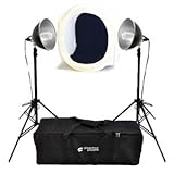 This kit is the perfect set up for web retailers or anyone wants to get a high quality shots without lots of hassle. This set includes everything you need to photography small to medium products, it is very easy to carry out and set up. Here, the system uses 5000k daylight bulbs give your shots the perfect look. The best you can find in the market, with 2 side lights , you will get a high quality shot just with a simple digital camera.