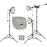 This is an Impact Medium Digital Light Sheds Fluorescent Boom Kit. It is built around the Impact floodlights and the Light Sheds 15 x 15 x 23" Medium Shooting Tent. It is a 3 light, 90 fluorescent watt total kit.